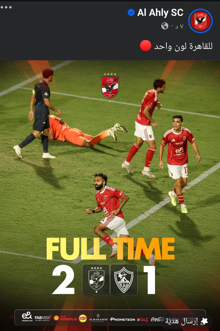 ونشرت المنصات الرسمية للأهلي عبر فيسبوك وتويتر وإنستجرام صورًا ولافتات احتفالية عقب صافرة النهاية، مرفقة بعبارات تؤكد أن "القاهرة لها لون واحد"، في إشارة إلى التفوق الأحمر التاريخي في مباريات القمة، وإلى أن الانتصار الأخير لم يكن مجرد ثلاث نقاط بل علامة فارقة في مسيرة الفريق هذا الموسم.