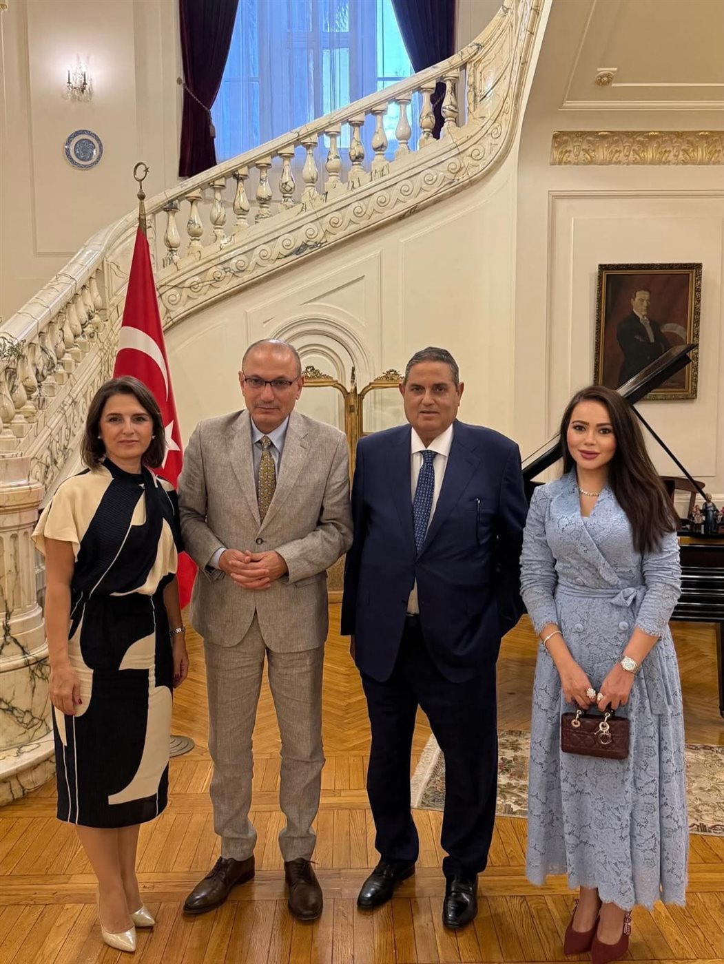 أسما إبراهيم في لقاء عائلي مع السفير التركي وزوجته بالقاهرة.. صور