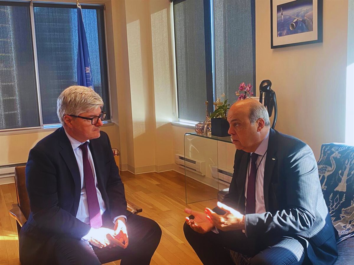 التقى الدكتور سامح الحفني وزير الطيران المدني مع خوان كارلوس سالازار سكرتير عام منظمة الطيران المدني الدولي بحضور محمد أبو بكر فارع، المدير الإقليمي للمنظمة الدولية للطيران المدني “الإيكاو” لمنطقة الشرق الأوسط وريم عرابى الممثل المناوب لمصر في مجلس منظمة الإيكاو، وذلك في إطار اللقاءات الثنائية رفيعة المستوى التي يعقدها الوفد المصري خلال مشاركته في أعمال الدورة الثانية والأربعين للجمعية العمومية لـ“الإيكاو” المنعقدة في مونتريال.