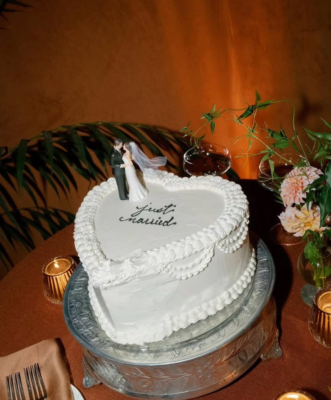 وبدت الإطلالة أكثر عصرية في لقطات مليئة بالحب، خصوصاً في لحظتها مع شريكها أمام كعكة الزفاف، حيث جمعت بين الأنوثة الناعمة والرومانسية.