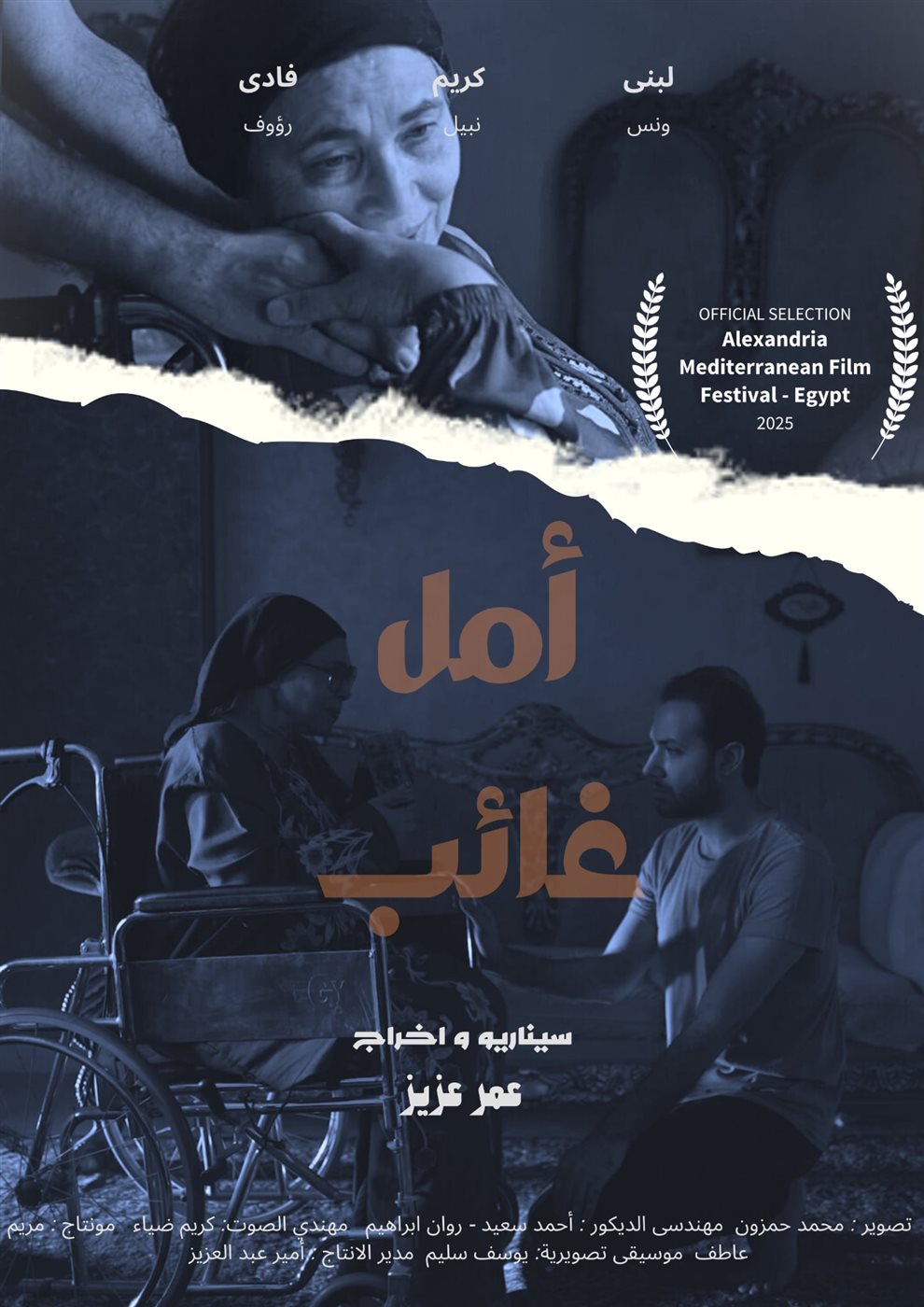 يقدم المخرج والسيناريست عمر عزيز فيلمه القصير “أمل غائب” والذى يشارك بمهرجان الإسكندرية لدول البحر المتوسط فى دورته الـ 41 ،دراما الاجتماعية، حيث تدور أحداثه حول أزمة مفاجئة تتعرض لها إحدى الأمهات في رحلة علاجها، لتصبح حياتها معلقة على خيط رفيع، بين الأمل واليأس، في انعكاس لحالات إنسانية يمر بها الكثيرون في المجتمع.
