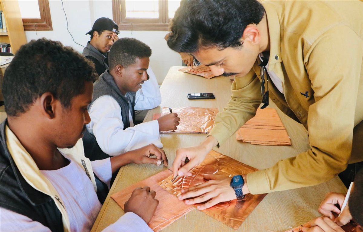 وكشف أن الورشة لا تنتهي بانتهاء فعاليات الملتقى، إذ يستمر التواصل مع المشاركين بعد عودتهم إلى محافظاتهم من خلال مدربين محليين لتطوير مهاراتهم في تصميم جداريات النحاس أو القطع الصغيرة المستوحاة من فن "الأوريجامي"، وتشهد هذه الورشة تنفيذ جدارية كبيرة تجسد الملامح التراثية لمدينتي حلايب والشلاتين.