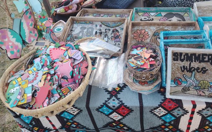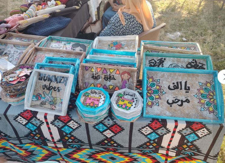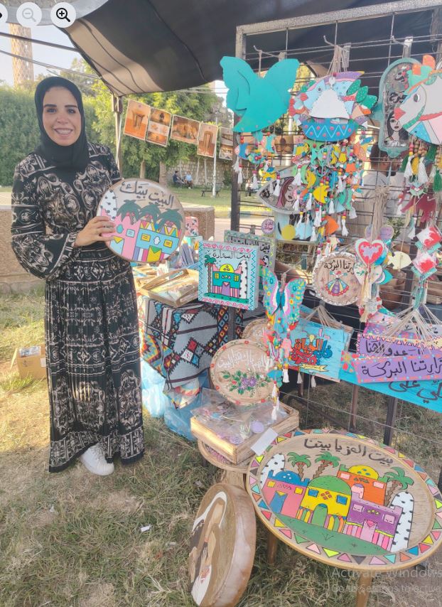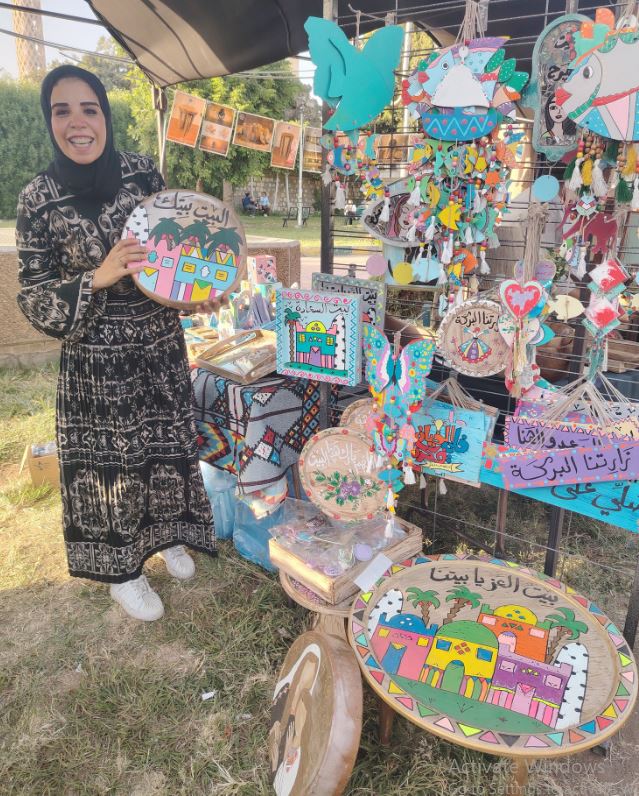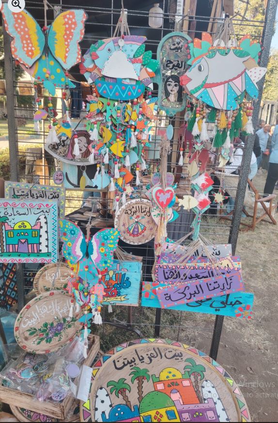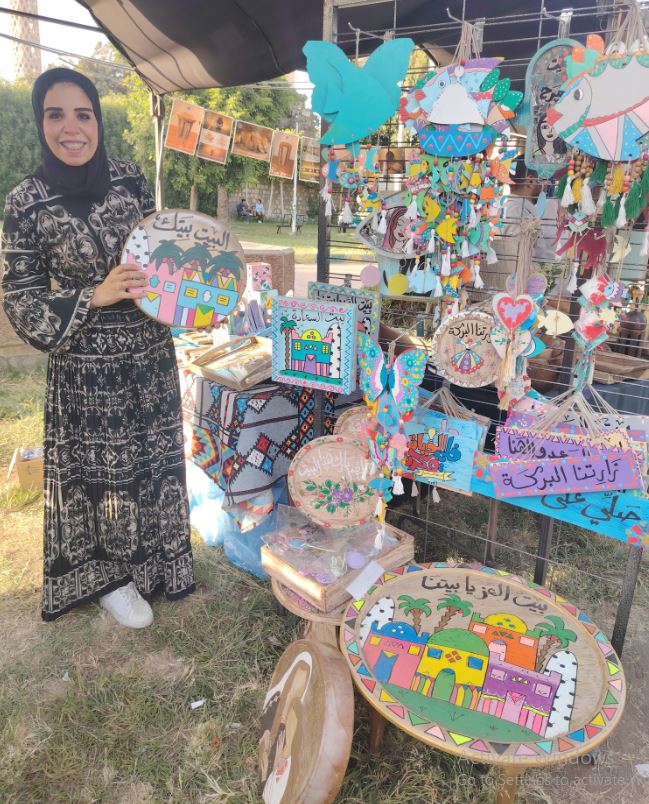 وأضافت، أنها شاركت في معرض زهور الخريف هذا العام لعرض بعض إنتاج مشروعها من تصميم ورسم وتزين بعض براويز وإكسسوارات الحائط وصواني التقديم المنقوش عليها بعض عبارات الترحيب مثل "أهلًا وسهلًا"، و" نورتونا"، و"بيك العز يا بيتنا"، "زارتنا البركة" وغيرها من العبارات الملئية بالحب والترحاب، لتجذب الجميع على شرائها وتزين منازلهم بها.