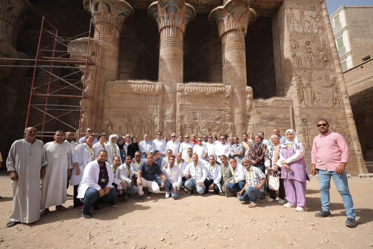 وفي ختام الجولة، حرص وزير السياحة والآثار على لقاء الأثريين والمرممين العاملين بإسنا، حيث استمع الي أرائهم وأفكارهم لتطوير العمل الأثري وأبرز المشكلات والتحديات التي تواجه العمل الأثري، واستمع إلى آرائهم ومقترحاتهم لتطوير بيئة العمل ورفع كفاءتها، مشددًا على أهمية تضافر الجهود بين جميع الأطراف للارتقاء بقدرات العاملين وتعزيز إمكاناتهم، مؤكداً على حرص الوزارة على العمل لحل مختلف التحديات ذات الصلة، وفي مقدمتها تحسين الموارد المالية للأثريين والمرممين، بما ينعكس إيجابًا على بيئة العمل.