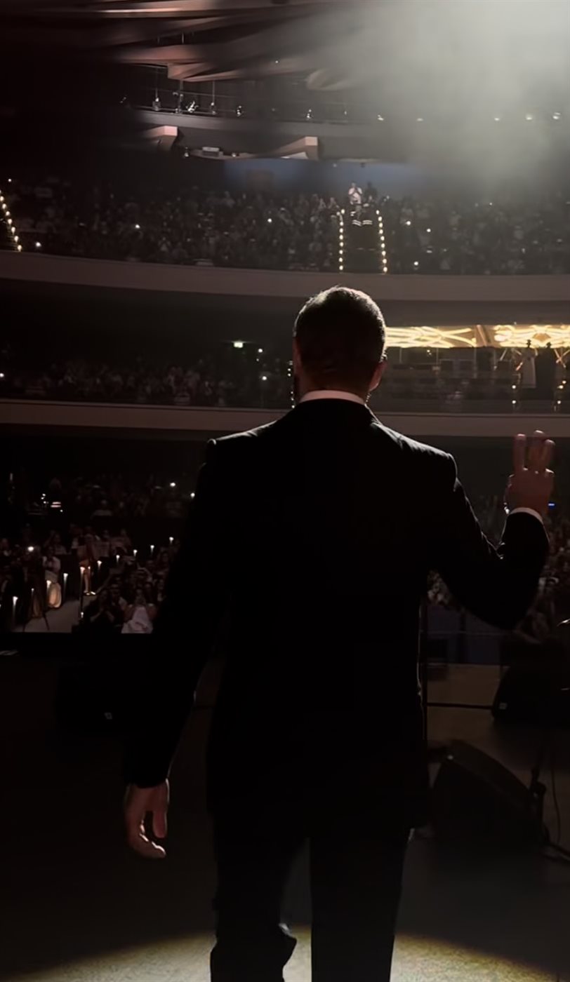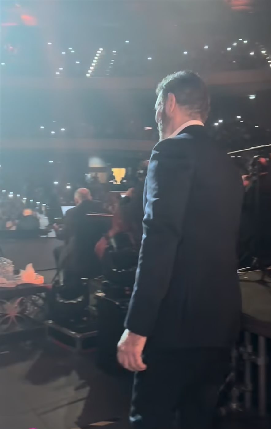 كما ظهر كاظم الساهر، في مقطع فيديو نشرته الشركة المنظمة للحفل، بإطلالة كلاسيكية، مرتديا بدلة سوداء وقميصا أبيض اللون.