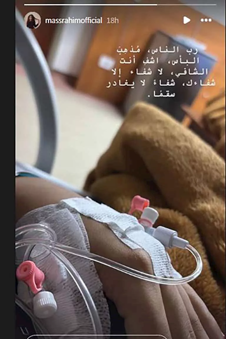 وكانت قد كشفت ماس رحيم، ابنة الملحن الراحل محمد رحيم، عن تفاصيل حالتها الصحية بعد دخولها المستشفى إثر تعرضها لوعكة صحية، وذلك خلال منشور عبر ستوري حسابها الشخصي بموقع تبادل الصور والفيديوهات “إنستجرام”.