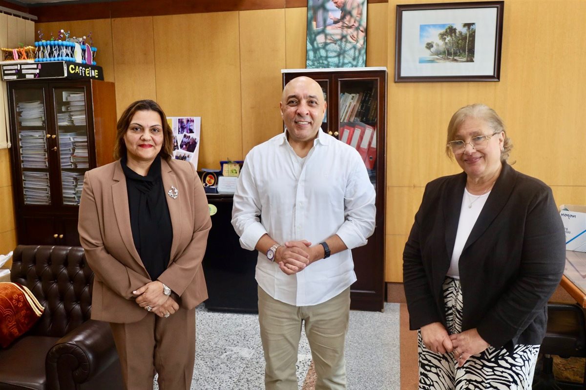 ‎واستقبل يوسف ورحب به الدكتور ممدوح غراب رئيس الجامعة، والدكتور هشام تمراز نائب رئيس الجامعة لشئون خدمة المجتمع وتنمية البيئة، والدكتورة إيمان العزيزي نائب رئيس الجامعة لشئون التعليم والطلاب، والدكتورة دينا فاروق أبو زيد عميدة الكلية.