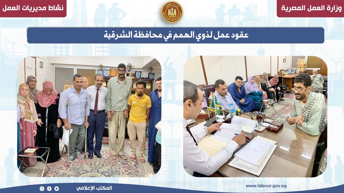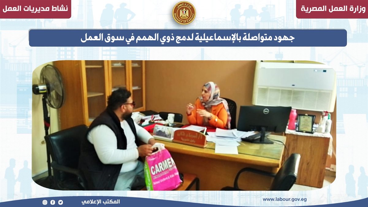وفي السياق ذاته، واصلت مديرية عمل الإسماعيلية جهودها لدعم ذوي الهمم ودمجهم في سوق العمل، تنفيذًا لتوجيهات محمد جبران وزير العمل، وتأكيدًا على دور الوزارة في توفير فرص عمل مناسبة ورعاية مستدامة لهذه الفئة، بالتعاون مع شركات ومؤسسات القطاع الخاص.