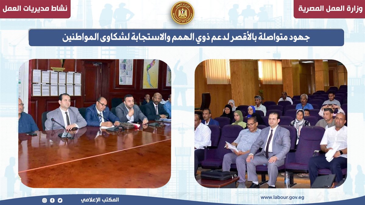 وأكد مدير المديرية، حرصهم على التفاعل مع هذه اللقاءات، وسرعة فحص الطلبات المقدمة في ضوء القانون وتوجيهات الوزير محمد جبران وزير العمل، ومحافظ الأقصر عبد المطلب عمارة.