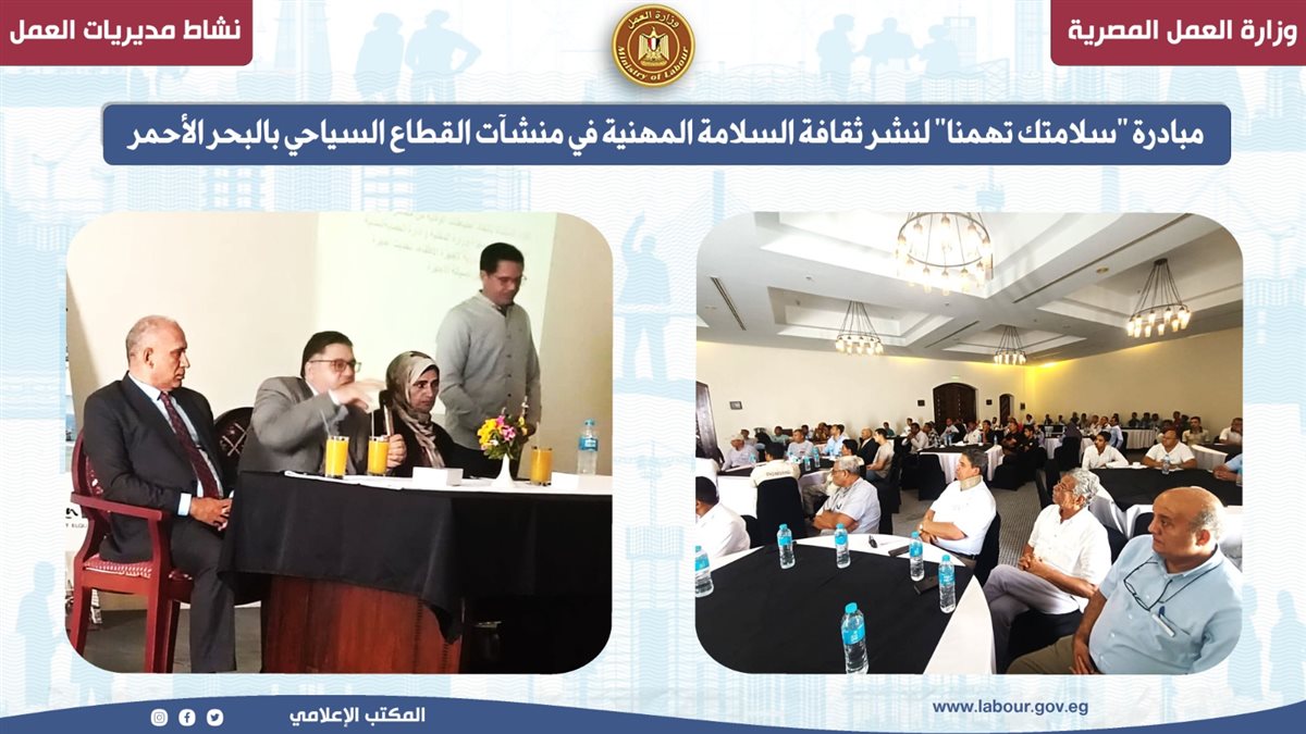 أطلقت مديرية العمل بالبحر الأحمر، مبادرة "سلامتك تهمنا" لنشر ثقافة السلامة والصحة المهنية، بفندق راديسون شمال مدينة القصير، بمشاركة نحو 100 من ممثلي 30 منشأة سياحية.