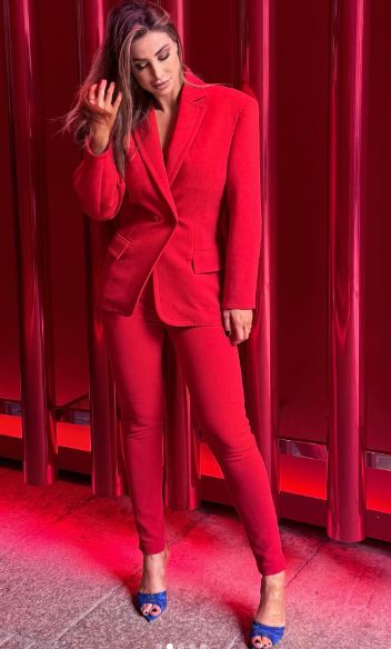 وبدت أنابليلا هلال بإطلالة شتوية تمزج بين الأتاقة والانوثة في آن واحد، مرتديه بدلة راقية التصميم متناغمة مع أجواء فصل الخريف وتعكس حبها للحياة وعشقها لتجديد باللون الأحمر الزاهي وتزينت ببعض المجوهرات المرصعه بحبيبات الألماس الراقي.