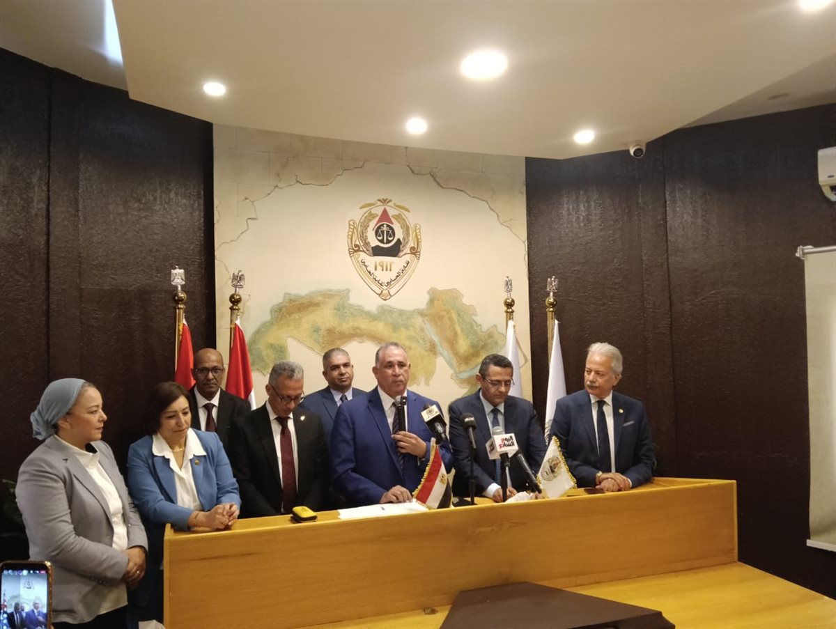 وبدأ منذ قليل، مجلس نقابة المحامين، برئاسة عبدالحليم علام، نقيب المحامين ـ رئيس اتحاد المحامين العرب، مؤتمرًا صحفيًا، بمقر النقابة العامة بشارع رمسيس في القاهرة.