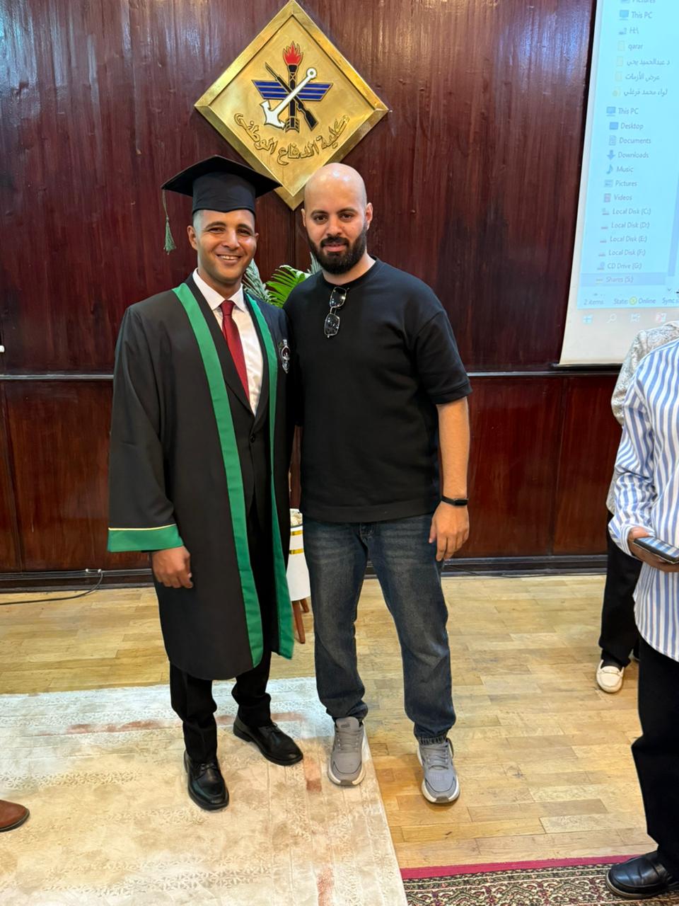 تقدم الصحفي محمد مراد بالتهنئة للنقيب أحمد عاطف حسن بمناسبة حصوله على درجة الماجستير المهني في الدراسات الاستراتيجية والسياسية من الأكاديمية العسكرية للدراسات العليا والاستراتيجية بأكاديمية ناصر العسكرية، وذلك عن رسالته البحثية المعنونة: “تحولات ظاهرة الإرهاب ومستقبلها في المنطقة وأثرها على الأمن بمنطقة الشرق الأوسط منذ عام 2011.”
