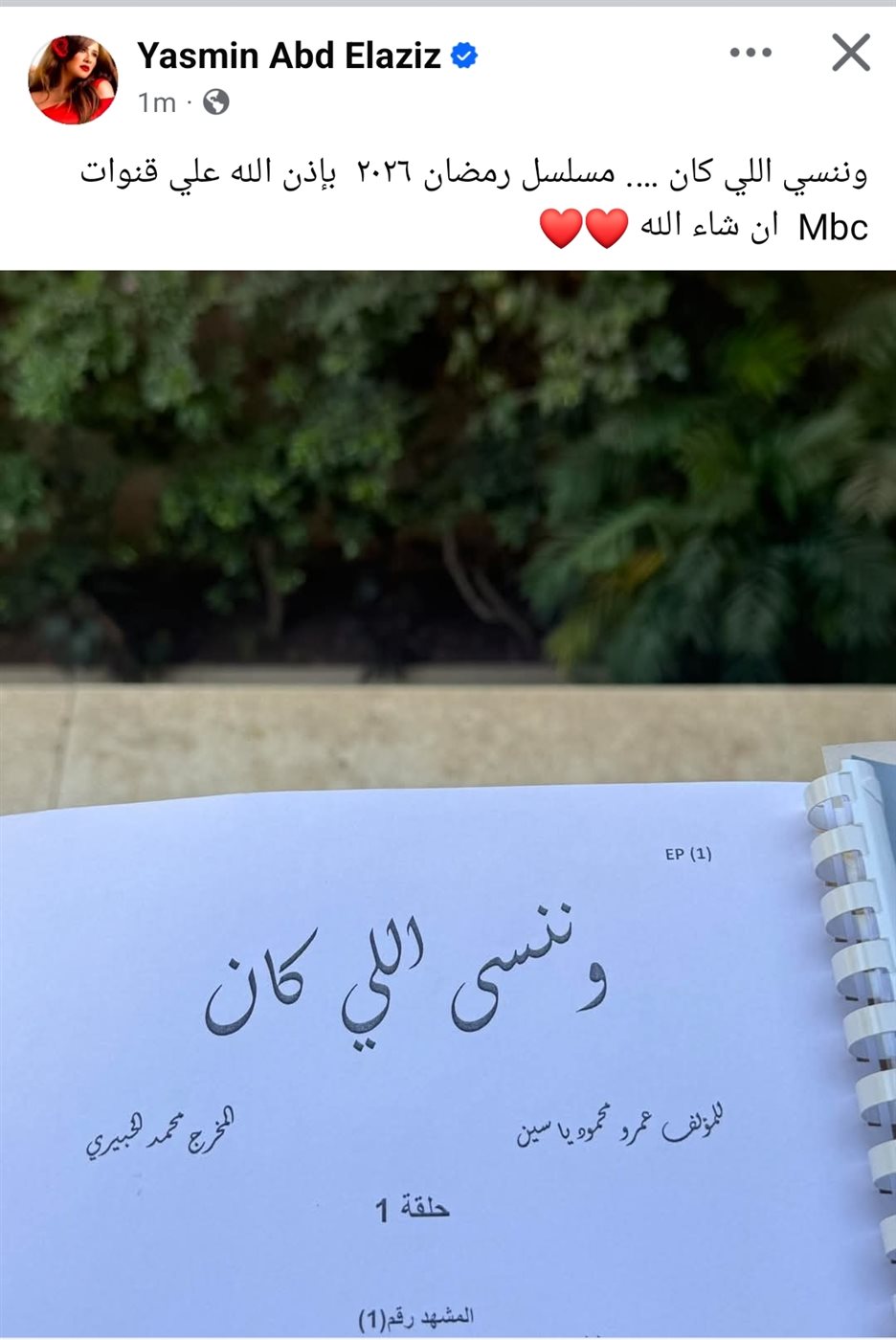 وكشفت ياسمين عن المشروع من خلال منشور عبر صفحتها الشهصية على موقع فيسبوك، قالت فيه: "وننسي اللي كان.. مسلسل رمضان ٢٠٢٦ بإذن الله علي قنوات MBC إن شاء الله".