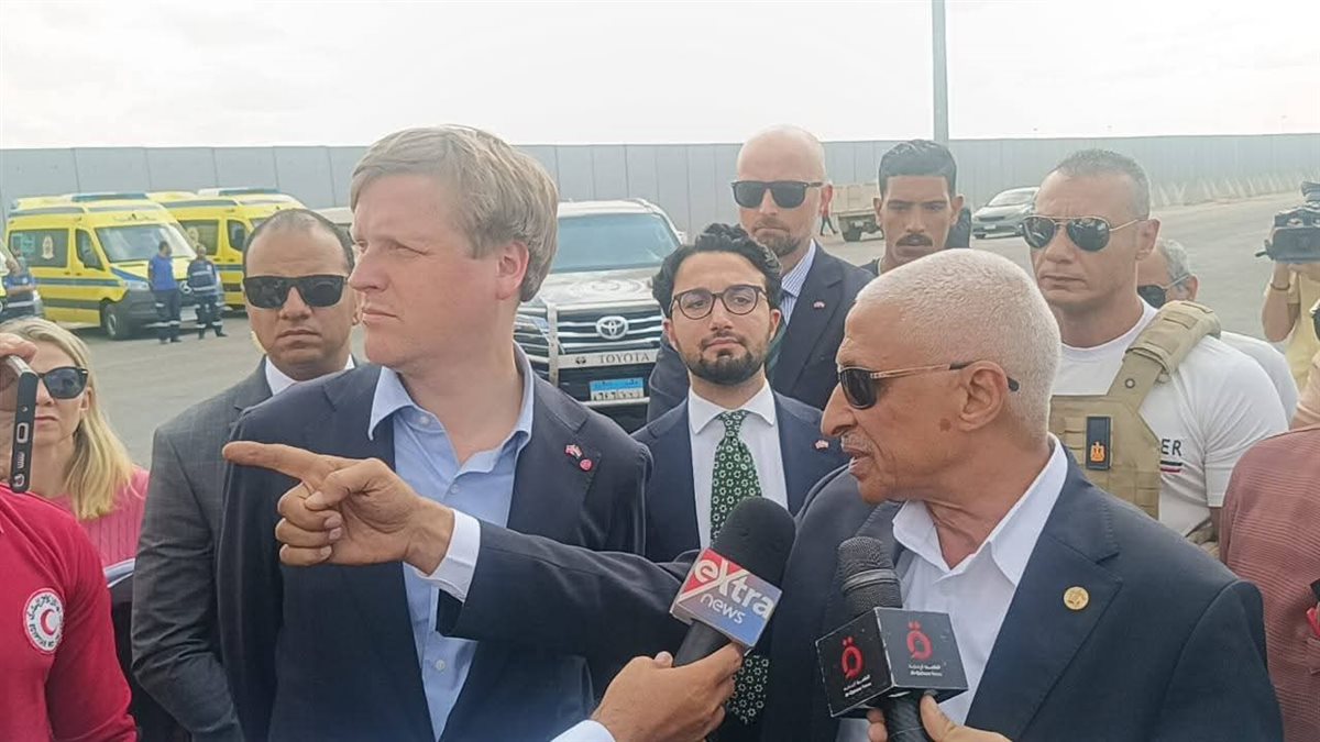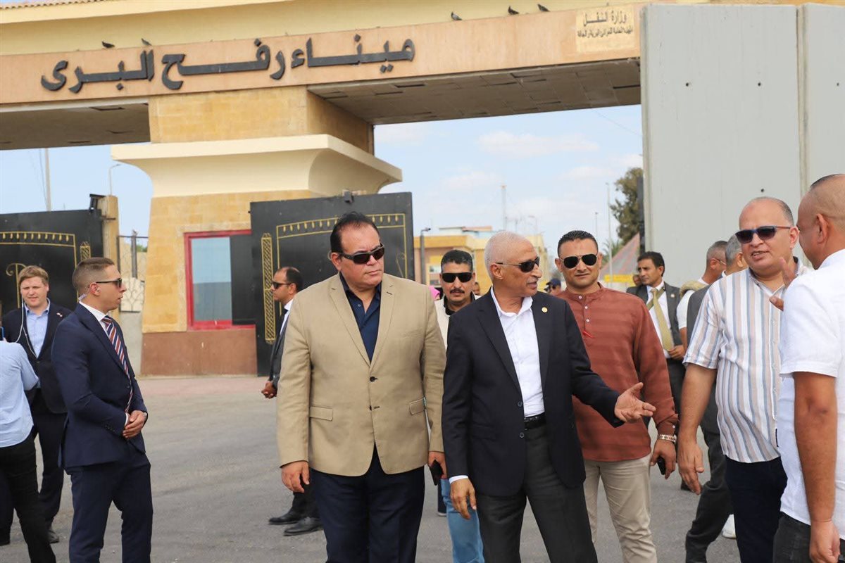 محافظ شمال سيناء ووزير التنمية النرويجى يتفقدا المساعدات بمعبر رفح