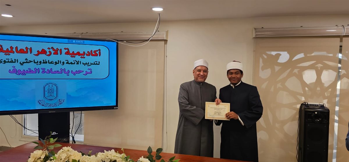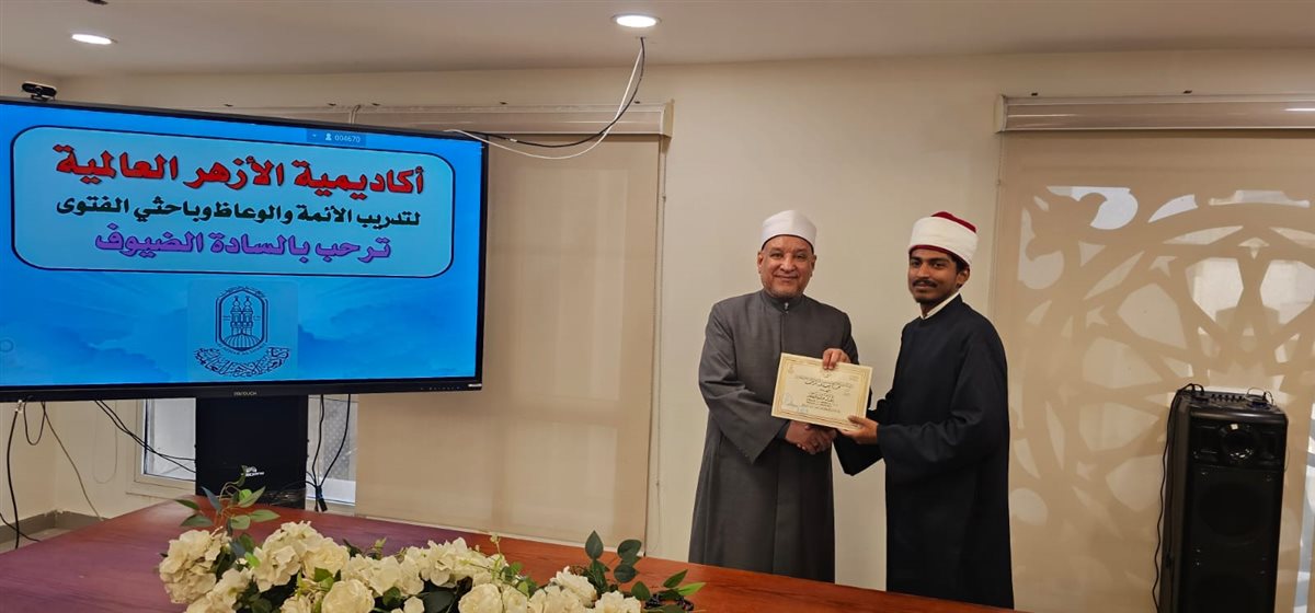 وفي ختام الاحتفال، قام الدكتور حسن الصغير، بتسليم الشهادات إلى المشاركين، موجهًا لهم التحية على التزامهم وجديّتهم، ومتمنيًا لهم دوام التوفيق والسداد في أداء رسالتهم الدعوية، وأن يكونوا قدوة في ترسيخ الصورة المشرقة للإسلام وقيمه السمحة في مجتمعاتهم.