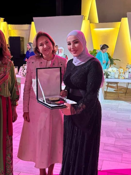 كرمت سمو الأميرة عالية الطباع، المطربة الأردنية نداء شرارة، على هامش مشاركتها بالغناء في الحفل السنوي لنادي سيدات السلاح الجوي الملكي.