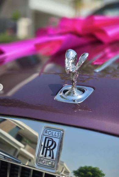 وكانت الهدية عبارة عن سيارة فارهة رولز رويس وكتبت مي: "شكرا حبيبي على هدية عيد ميلادي الجميلة، أشعر بالرضا، والدلع والحب".