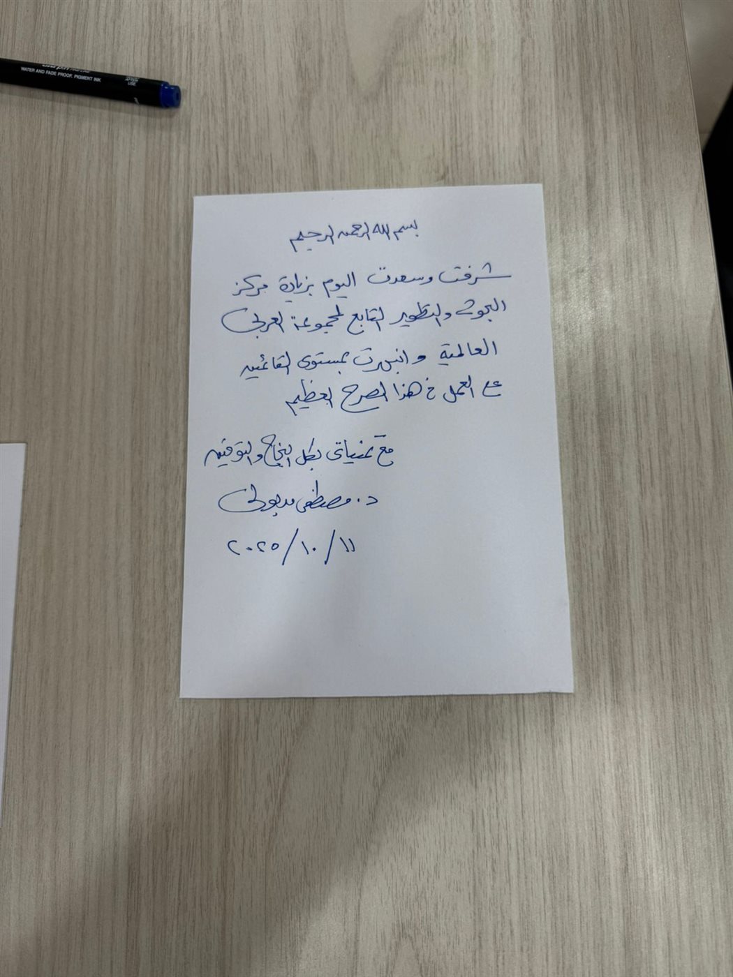 وسجل رئيس مجلس الوزراء كلمة في سجل زوار مجموعة العربي عبر فيها عن سعادته اليوم بزيارة مركز البحوث والتطوير التابع لمجموعة العربي العالمية، كما عبر عن انبهاره بمستوى القائمين على العمل في هذا الصرح العظيم، داعيا لهم باستمرار النجاح والتوفيق.