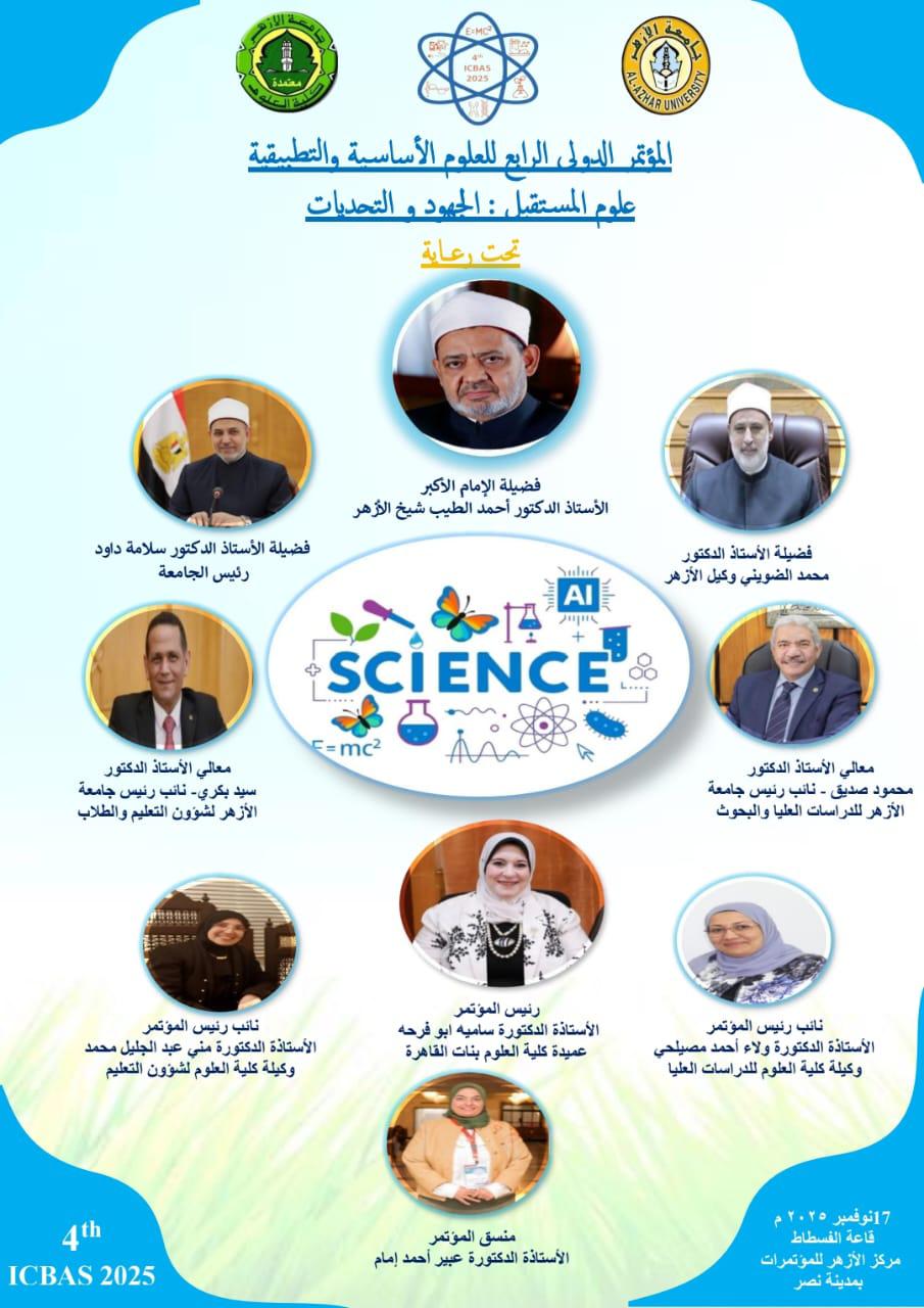 تنظم كلية العلوم للبنات بالقاهرة المؤتمر الدولي الرابع للعلوم الأساسية والتطبيقية تحت عنوان: "علوم المستقبل الجهود والتحديات" في 17 من نوفمبر القادم 2025م بمركز الأزهر للمؤتمرات بمدينة نصر.
