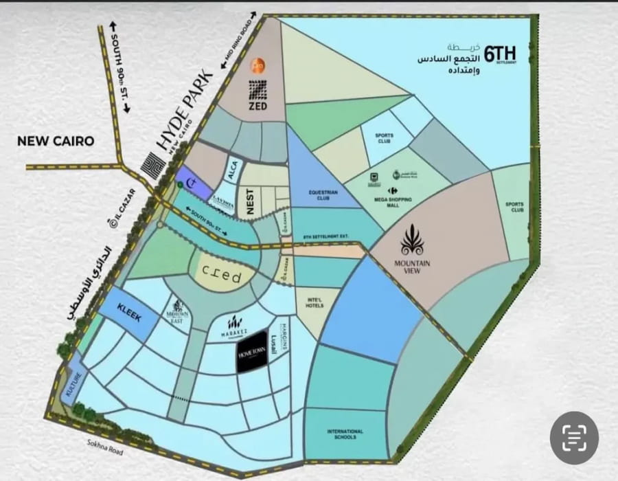 - كمبوندات راقية مثل هايد بارك، ميفيدا، والقطامية الجديدة: على مقربة مباشرة من التجمع.
