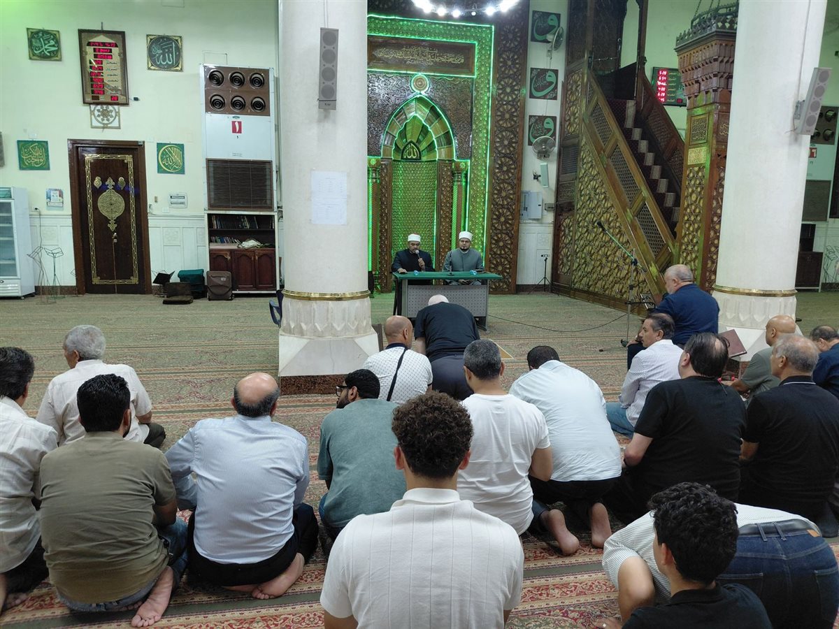 وفي إطار المجالس المنعقدة في مساجد العاصمة، شهد مسجد السيدة فاطمة النبوية رضي الله عنها مجلسًا علميًّا مماثلًا لفضيلة الدكتور أحمد العوضي، أمين الفتوى بدار الإفتاء، دار الحديث فيه حول آداب تلاوة القرآن الكريم وأحكام الطهارة المتعلقة بها، كما أجاب فضيلته عن أسئلة الحاضرين المتنوعة حول فضل التلاوة وأثرها في تزكية النفس.