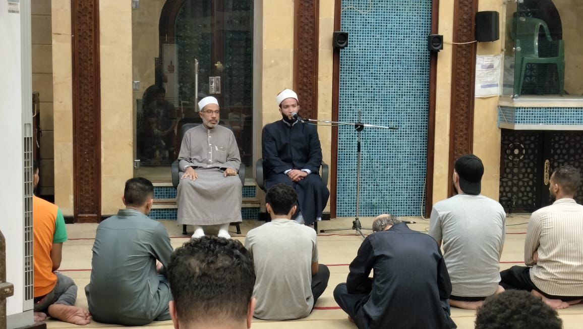 وفي مسجد الفردوس بمدينة 15 مايو، حاضر فضيلة الشيخ أحمد خليفة همام، أمين الفتوى بدار الإفتاء، بمشاركة فضيلة الشيخ هاني السويدي من وزارة الأوقاف، حيث تناولا الأحكام المتعلقة بحمل المصحف وتلاوته، إلى جانب أسئلة عن فقه العبادات والمعاملات والمواريث وأحكام الجنائز.