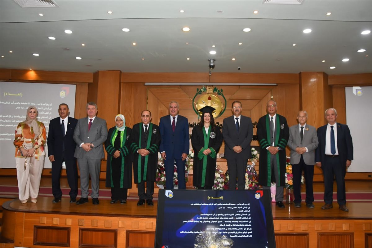 وتكوّنت لجنة المناقشة من: اللواء أ.ح د. محمد الدسوقي مساعد مدير الأكاديمية ورئيس اللجنة، واللواء أ.ح عصام النجار رئيس الهيئة العامة للرقابة على الصادرات والواردات، والدكتورة سالي فريد أستاذة الاقتصاد ورئيس قسم الاقتصاد بكلية الدراسات الأفريقية العليا بجامعة القاهرة.