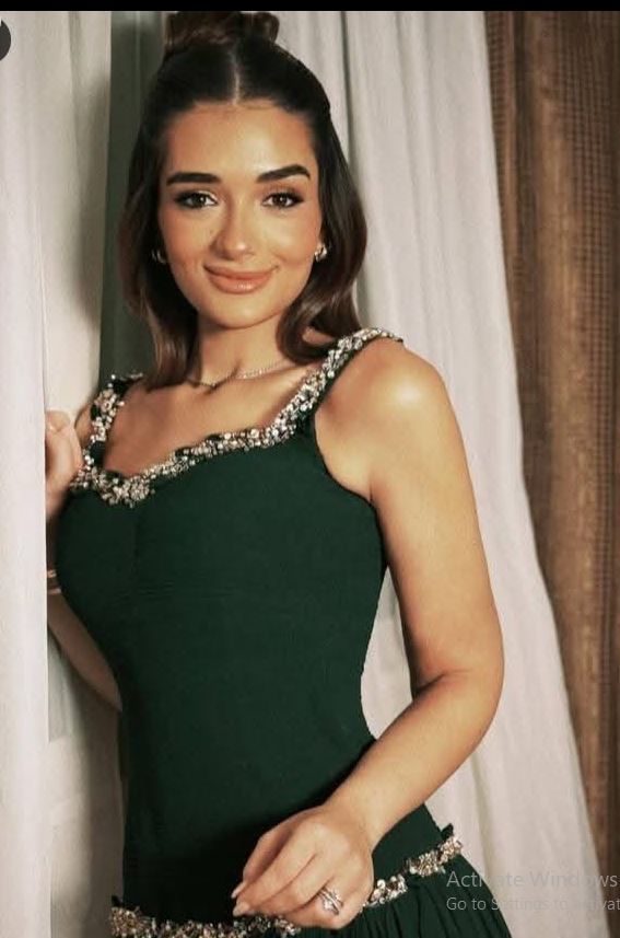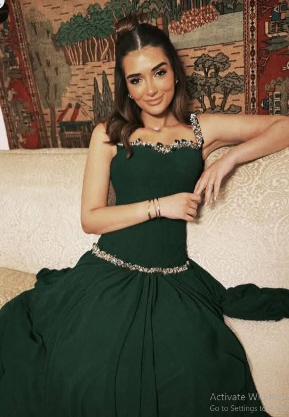 وبدت ملك أحمد زاهر بإطلالة ساحرة تمزج بين الأنوثة والجاذبية في آن واحد، مرتدية فستان طويل مجسم من اعلى وفضفاض من أسفل صمم من قماش الحرير باللون الزيتي الغامق ومطرز بحبيات الكريستال، الفستان عكس قوامها الرشيق.