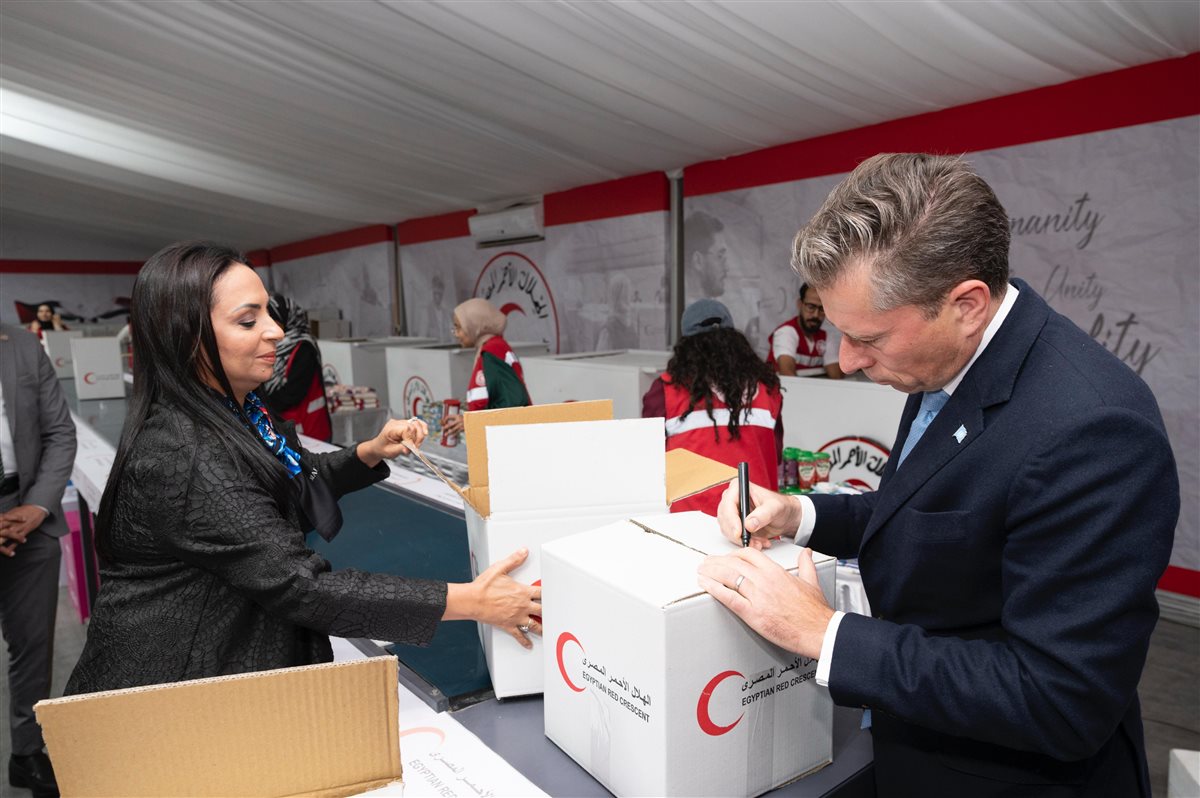 وانتقلت وزيرة التضامن الاجتماعي ووكيل الأمين العام للشئون الإنسانية ومنسق الإغاثة في حالات الطوارئ إلى مركز تعبئة المعونات الإنسانية، حيث شارك  المتطوعين في تعبئة عدد من المواد الإغاثية الإنسانية التي ستنتقل إلى العريش تمهيدا لإدخالها للأشقاء الفلسطينيين.