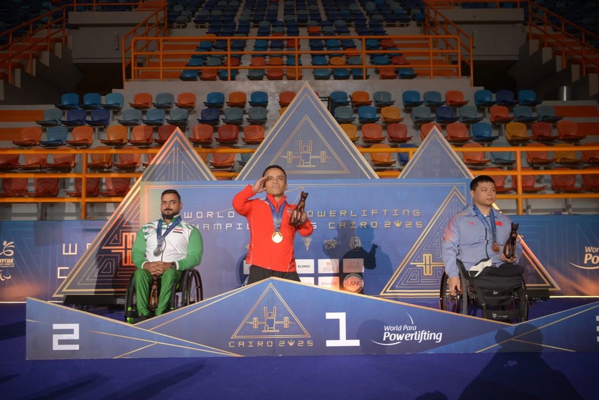 يتقدم المجلس القومي للإعاقة بخالص التهنئة والتقدير للبطل البارالمبي محمد المنياوي، لاعب منتخب مصر البارالمبي لرفع الأثقال، بمناسبة تتويجه بالميدالية الذهبية في منافسات وزن 59 كجم ببطولة العالم المقامة بالعاصمة الإدارية الجديدة، والتي تُقام لأول مرة على أرض قارة إفريقيا، بمشاركة نخبة من أبطال العالم في اللعبة.