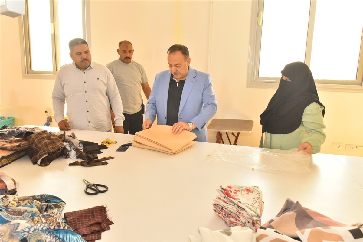 محافظ أسيوط يتابع إنتاج مشغل الخياطة بالمجمع الحرفي بالشامية