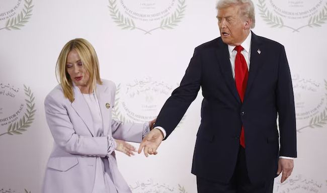 وغازل رئيسة وزراء إيطاليا جورجيا ميلوني، قائلا: “لدينا امرأة شابة وجميلة”.