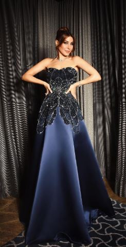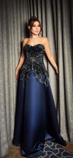 وبدت يارا بإطلالة ساحرة، مزجت بين الأنوثة والجاذبية في آن واحد، مرتدية فستان طويل مجسم من أعلى وفضفاض من أسفل، مكشوف الظهر، ينتمي لقصة الكب، صمم الفستان من قماش الساتان باللون الحكلي، طرز بحبيبات الخرز من الأمام مع حبيبات الكريستال.