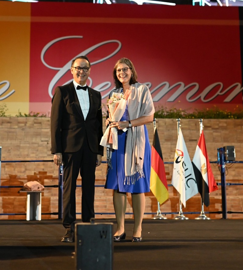 واختتمت كلمتها بتوجيه رسالة نصح وحب للخريجين " أنتم اليوم خريجوالجامعة الالمانية سفراء للتفاهم بين الثقافات. أراكم قادة المستقبل وباحثين ومبتكرين قادرين على الربط بين مصر وألمانيا، وبين العلوم والمجتمعات، قادرين على مواجهه القضايا المحلية والسعي لايجاد الحلول العالمية ، وبالنيابة عن الهيئة الألمانية للتبادل االعلمي ، أتمنى لكم كل التوفيق في مساعيكم المقبلة، وأن تواصلوا دائمًا بناء الجسور واستخدام معارفكم لإحداث الأثر الإيجابي في حياة الآخرين. فاليوم نحتفل بنهاية مرحلة وبداية مستقبل واعد.