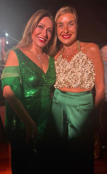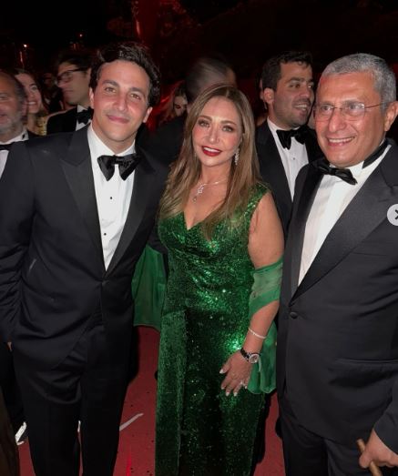 وبدت ليلى علوي بإطلالة متوهجة، مرتدية فستان طويل مجسم، صمم من قماش الترتر اللامع باللون الأخضر الزاهي، عكس قامها الرشيق ووزنها المثالي.