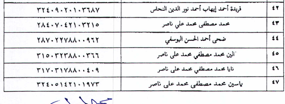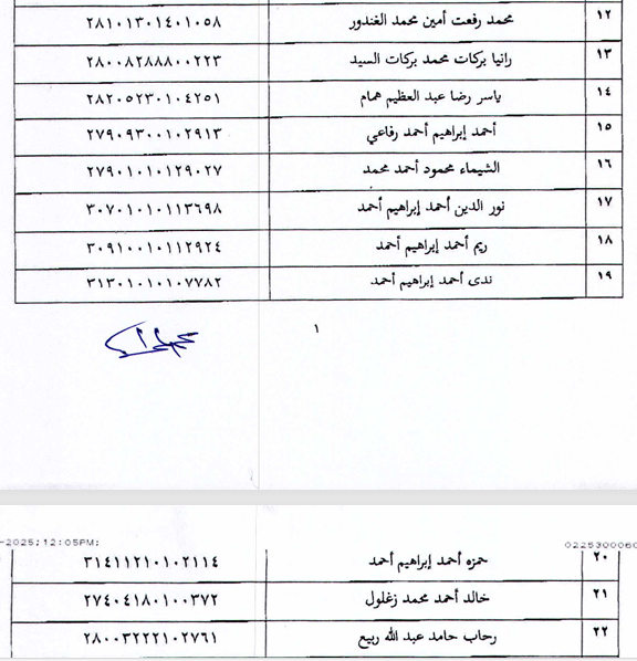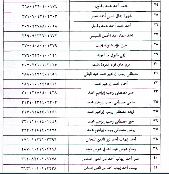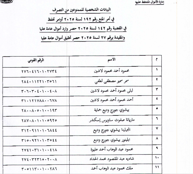 ارفق بقرار المنع كشفًا تفصيليًا بالبيانات الشخصية للأسماء الصادر بشأنهم أمر المنع، مطالبة الجهات المعنية باتخاذ ما يلزم من إجراءات قانونية في ضوء القرار.