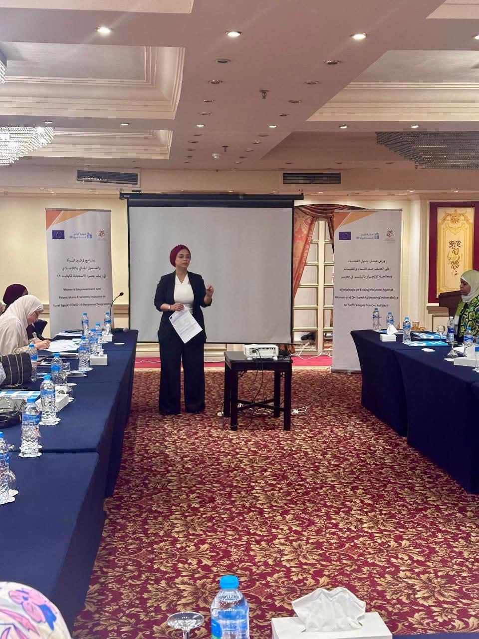 في إطار سلسلة ورش العمل التي تعقدها اللجنة الوطنية التنسيقية لمكافحة ومنع الهجرة غير الشرعية والاتجار بالبشر للرائدات الاجتماعيات التابعات لوزارة التضامن الاجتماعي، نظمت اللجنة الوطنية التنسيقية بالتعاون مع وزارة التضامن الاجتماعي وهيئة الأمم المتحدة للمرأة ورشة عمل للرائدات الاجتماعيات من محافظة الجيزة.