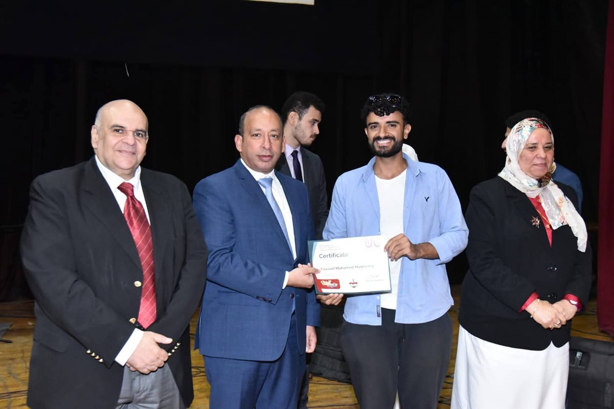 وأُقيم الحفل تحت رعاية وبحضور الدكتور حسام صلاح مراد، عميد الكلية ورئيس مجلس إدارة المستشفيات الجامعية، والدكتورة حنان مبارك، وكيل الكلية لشؤون التعليم والطلاب، والدكتور عمر عزام، وكيل الكلية لشؤون خدمة المجتمع وتنمية البيئة.