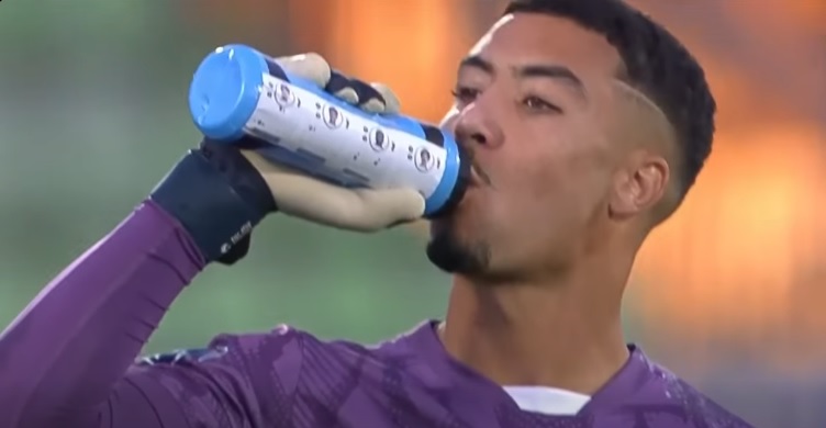 صورة .. حارس المغرب يستخدم زجاجة محمد أبو جبل في المونديال