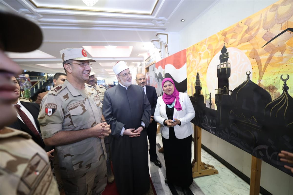 قيادات الأزهر والدفاع الشعبي والعسكري يفتتحون المعرض الفني على هامش الندوة التثقيفية الـ89
