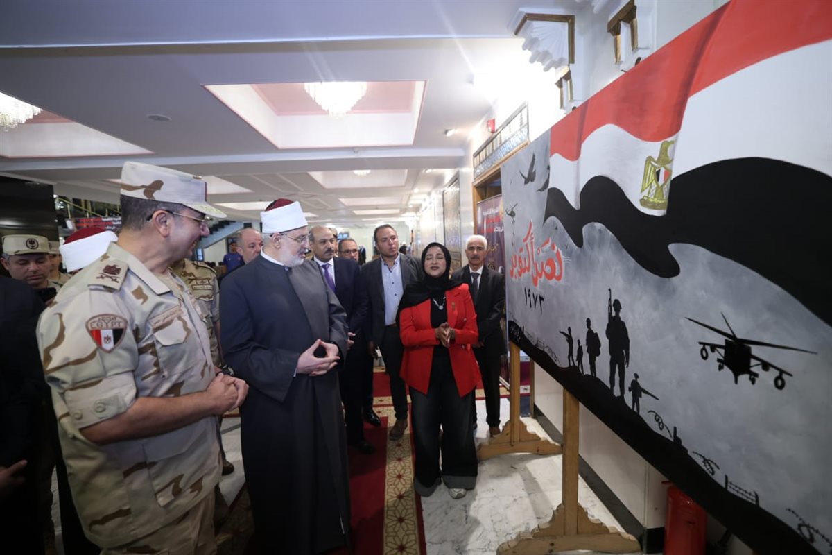 افتتح فضيلة الأستاذ الدكتور محمد الضويني، وكيل الأزهر الشريف، والسيد اللواء أركان حرب هشام حسني حسن، قائد قوات الدفاع الشعبي والعسكري، وأ.د/ سلامة داود، رئيس جامعة الأزهر، والشيخ أيمن عبدالغني، رئيس قطاع المعاهد الأزهرية، وأ.د/ محمد الجندي، الأمين العام لمجمع البحوث الإسلامية، وعدد من القيادات الأزهرية وقيادات الدفاع الشعبي والعسكري، المعرض الفني المُقام على هامش الندوة التثقيفية الكبرى التاسعة والثمانين لقوات الدفاع الشعبي والعسكري، والتي جاءت بعنوان «ويُثبِّت أقدامكم»، احتفاءً بالذكرى الثانية والخمسين لانتصارات أكتوبر المجيدة، وذلك بالتعاون مع الأزهر الشريف.
