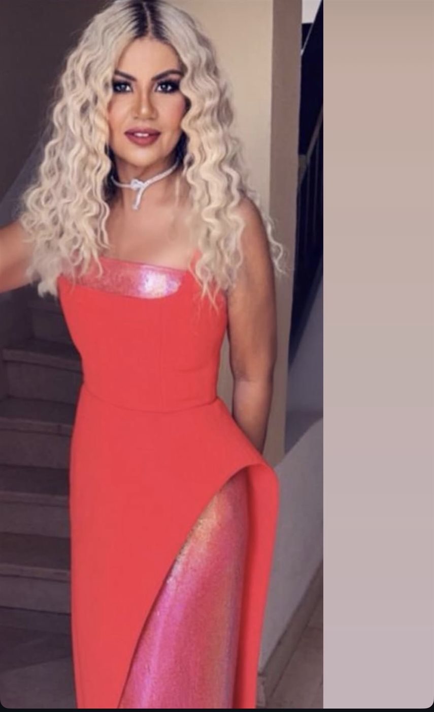 واعتمدت الإعلامية تسريحة شعر مموجة واسعة باللون الأشقر الذهبي، مع مكياج قوي ركز على العيون المحددة والشفاه باللون الأحمر القاني.