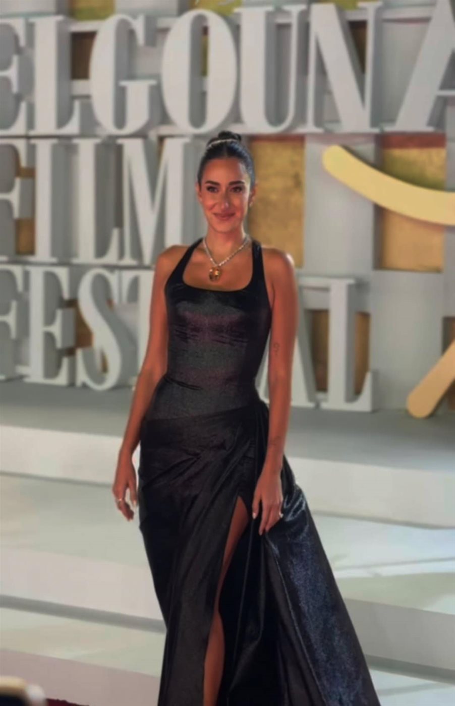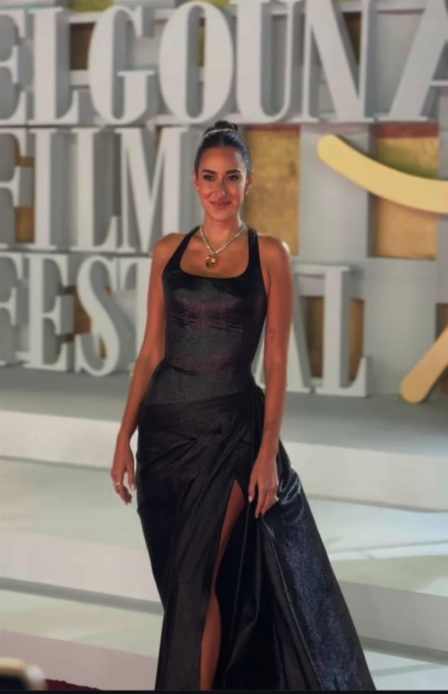 أمينة خليل تتألق بالأسود المجسم في افتتاح مهرجان الجونة السينمائي (شاهد)