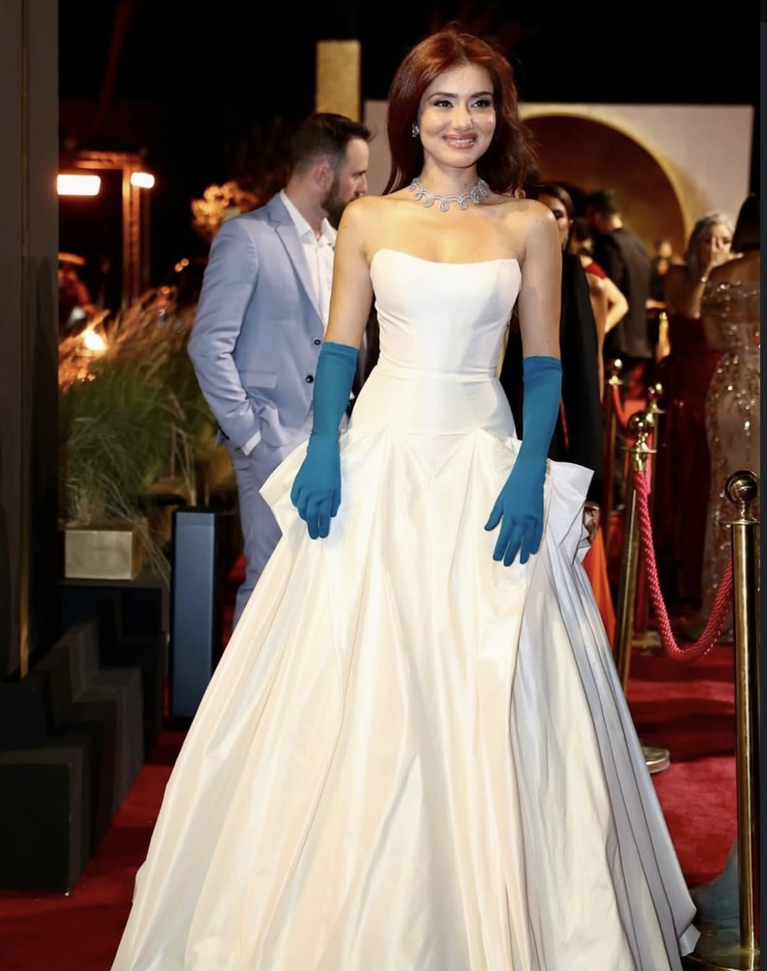 ووصلت الفنانة جيهان الشماشرجي إلى السجادة الحمراء بإطلالة أنيقة تشبه الأميرات، حيث تألقت بفستان خطف الأنظار ونال إعجاب الحضور، الذين حرصوا على التقاط الصور التذكارية معها على الريد كاربت.
