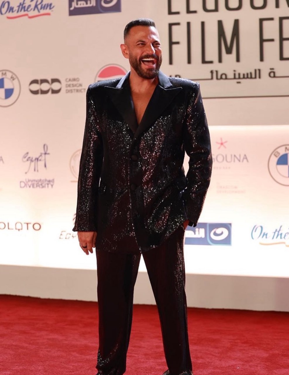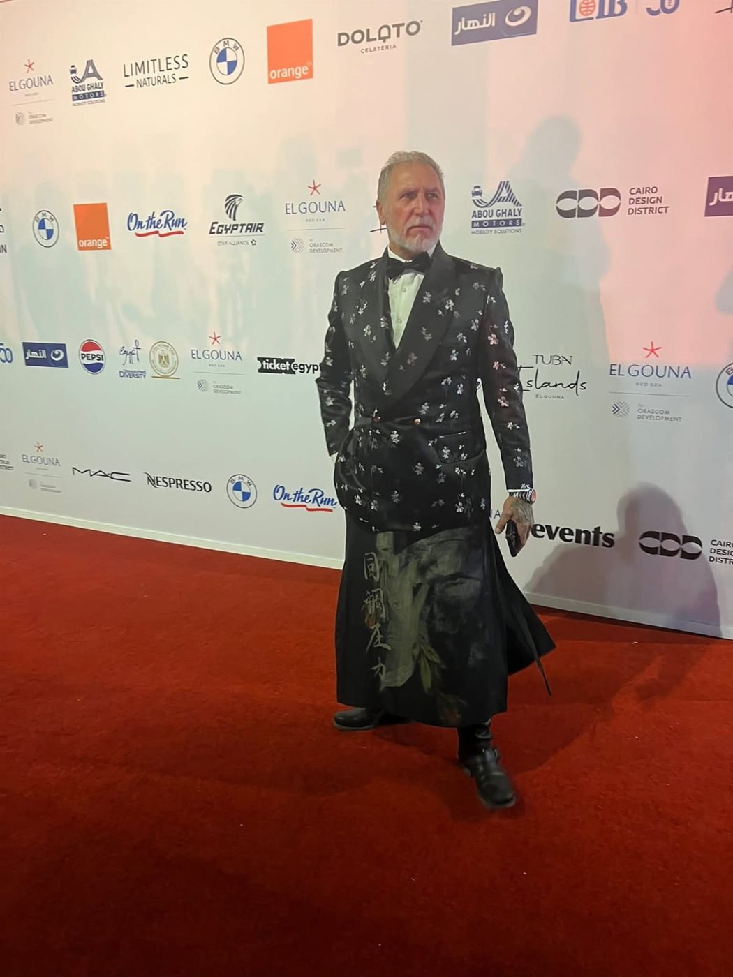 في مقدمة الحاضرين، ظهر الفنان حسن أبو الروس بإطلالة اعتاد بها إثارة الجدل، حيث ارتدى حذاءً أحمر لامعًا لافتًا للنظر، ونسّقه مع بدلة سوداء مطرزة بتصميم فريد وغريب في الوقت ذاته، ما جعله محور حديث الجمهور وعدسات المصورين على السجادة الحمراء، مؤكدًا مرة أخرى رغبته في كسر القواعد التقليدية في الموضة كما اعتاد في كل ظهور له.