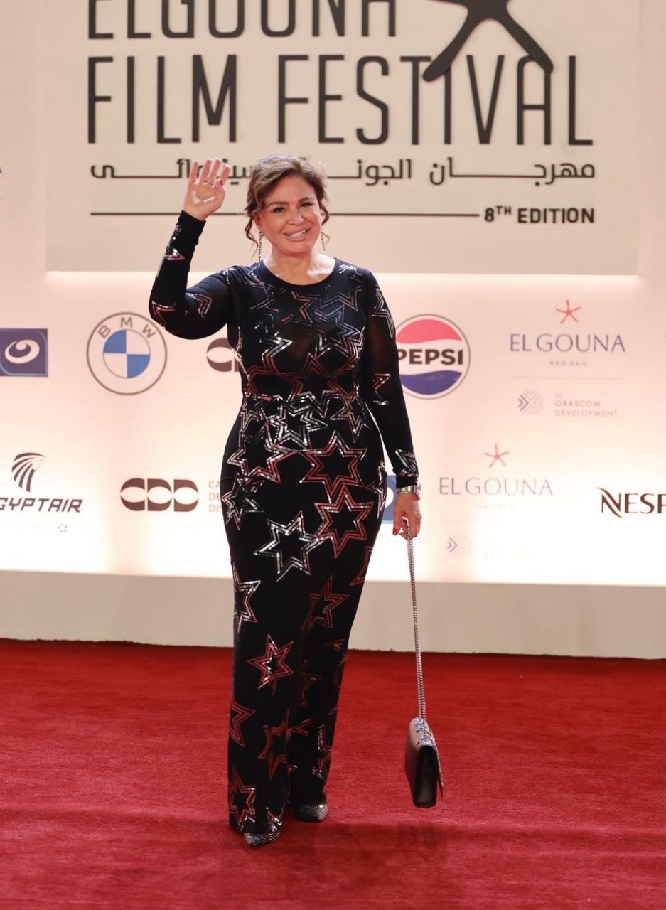 تألقت الفنانة إلهام شاهين بفستان أسود بسيط عكس أنوثتها وجمالها، خلال حضورها مهرجان الجونة السينمائي في دورته الثامنة.