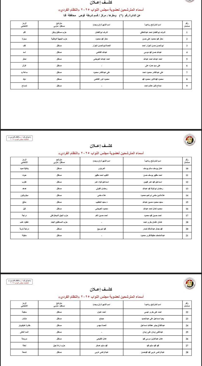بالأسماء.. ننشر الكشوف المبدئية لمرشحي الفردي في سباق النواب بقنا