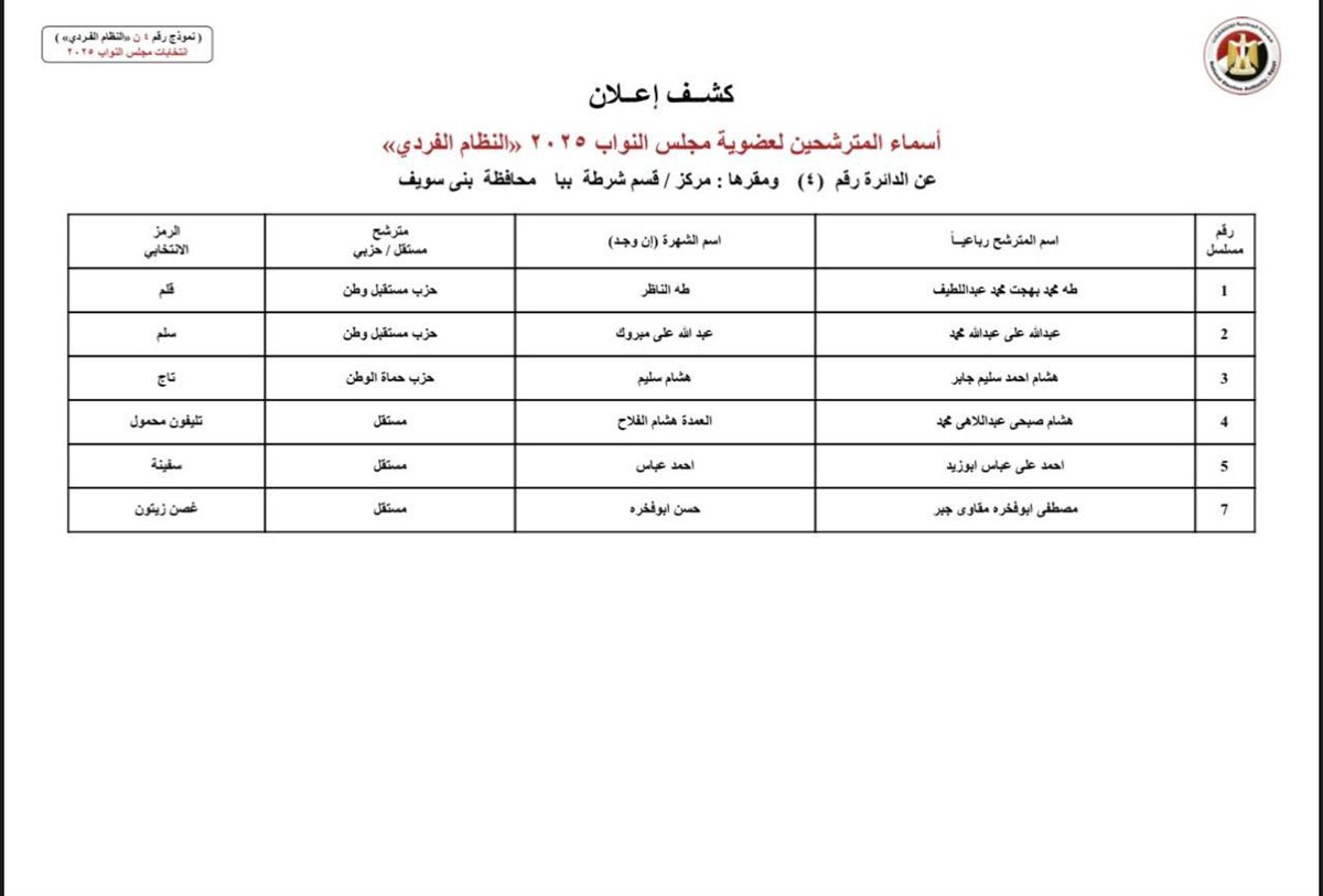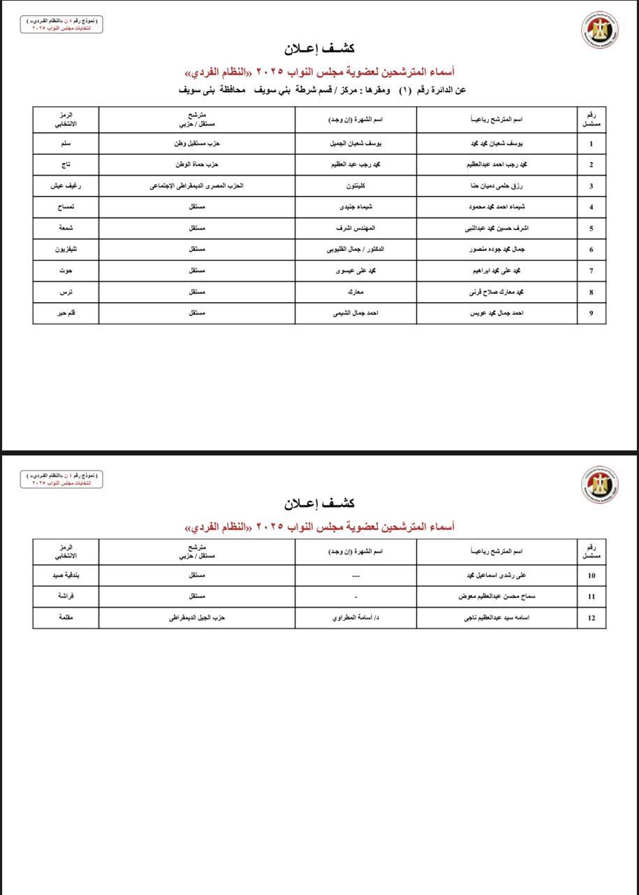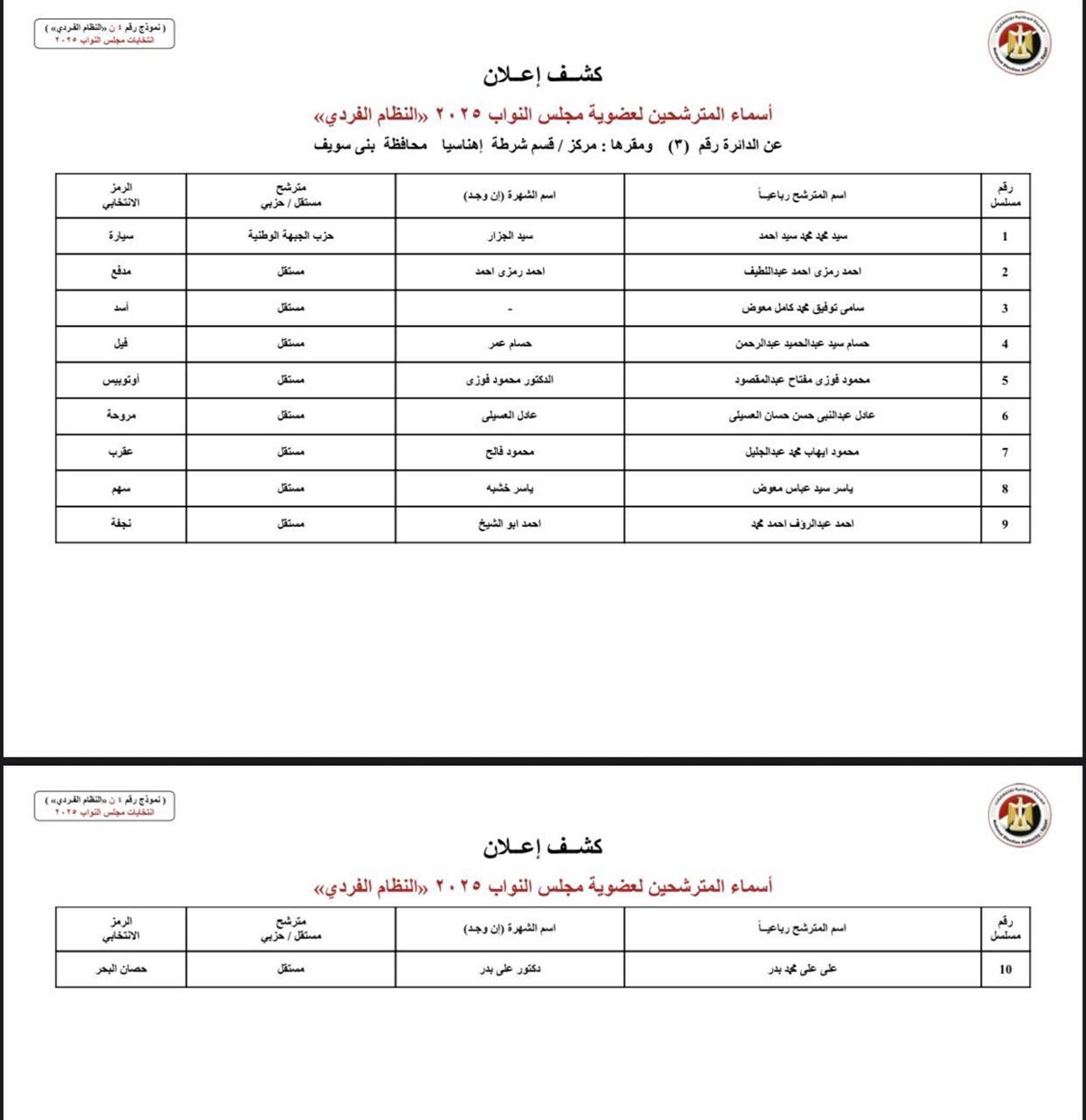 ننشر القائمة المبدئية لمرشحي الفردي في انتخابات النواب ببني سويف