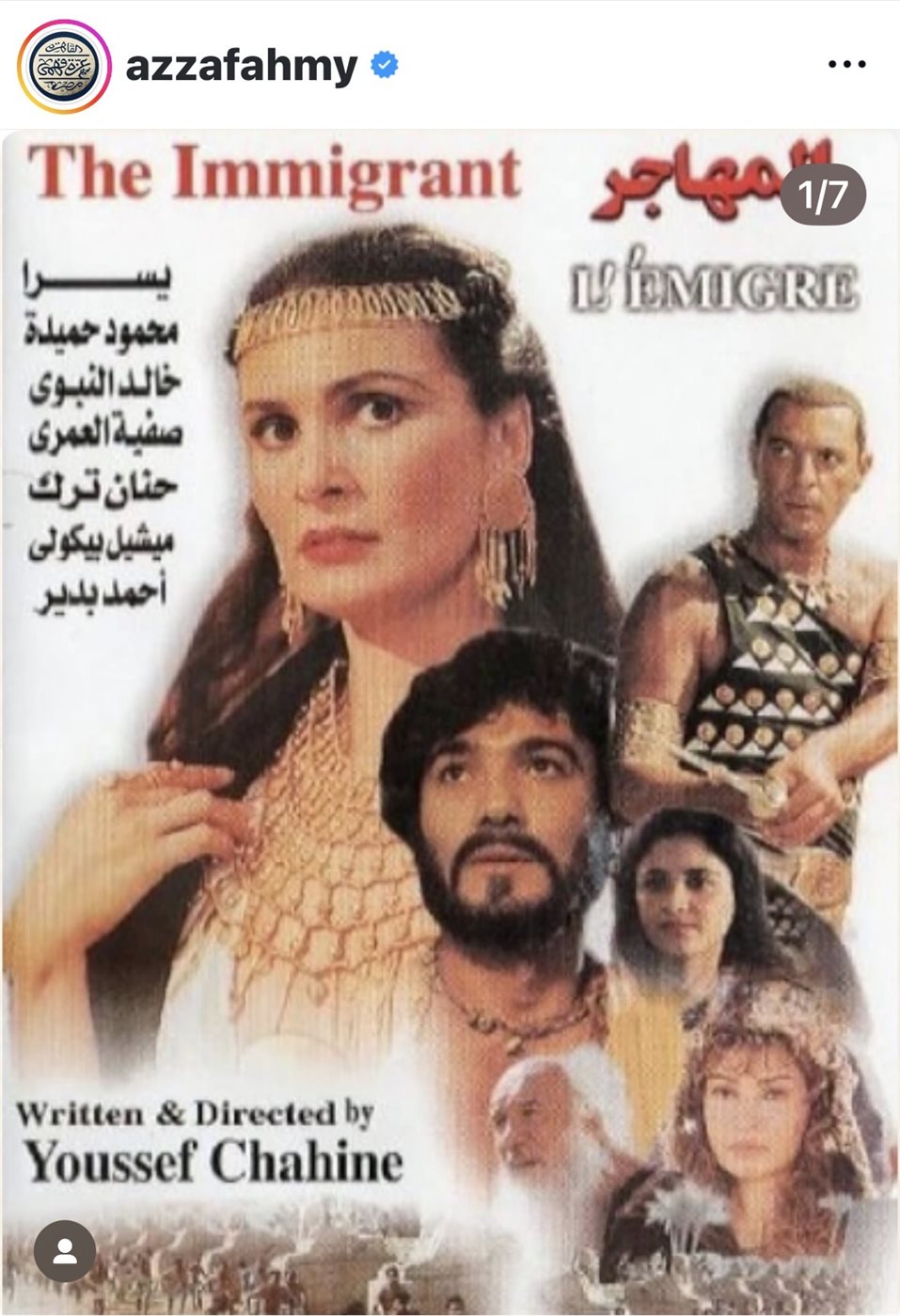 وجهت مصممة الحُلي الشهيرة عزة فهمي رسالة مؤثرة إلى الفنانة يسرا بالتزامن مع احتفال مهرجان الجونة السينمائي بمئوية المخرج العالمي يوسف شاهين، مستعيدة ذكريات تعاونهما في فيلم «المهاجر» الذي أنتج قبل 31 عامًا، وظهرت فيه يسرا مرتدية تصميمات من مجوهرات فهمي.